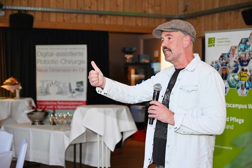 In diesem Fall kam die Wissensvermittlung im Rahmen eines informativen, aber eben auch unterhaltsamen Abends mit einer Prise Humor daher. „Wir müssen bei unseren Patienten die Gesundheitskompetenzen stärken“, ist sich dabei Doc Esser, bürgerlich Dr. med. Heinz-Wilhelm Esser, sicher. Der immer noch als Internist und Kardiologie tätige TV-Arzt schlug in seinem Vortrag einen Bogen von den kleinen grauen Zellen zu schwimmenden Mäusen in der Forschung, über die Macht und Möglichkeiten der Bewegung bis zu Antioxidativer Ernährung bei Krebspatienten und: Wie immer bei Doc Esser durfte trotz des sehr ernsten Themas auch oft uns ausgiebig gelacht werden. „Es ist nicht gar nicht solange her, da haben wir Ärzte darüber diskutiert, ob der krebserkrankte Körper nicht schon genug belastet ist, um Sport zu machen – definitiv nein!“, stellte Doc Esser klar und verwies auf die umfangreichen Forschungsergebnisse, die die positive Wirkung von Bewegung auch bei Schwerstkranken belegen. Auch für die meisten, insbesondere durchs Netz geisternden Ernährungstipps fand Doc Esser deutliche Worte. „Das ist viel Unsinn dabei!“ Der Internist rät da eher zu viel frischem Obst und Gemüse, wenig Fleisch – und wenn, dann gutes vom heimischen Metzger – und einer grundsätzlich saisonal und regional ausgerichteten Ernährung.