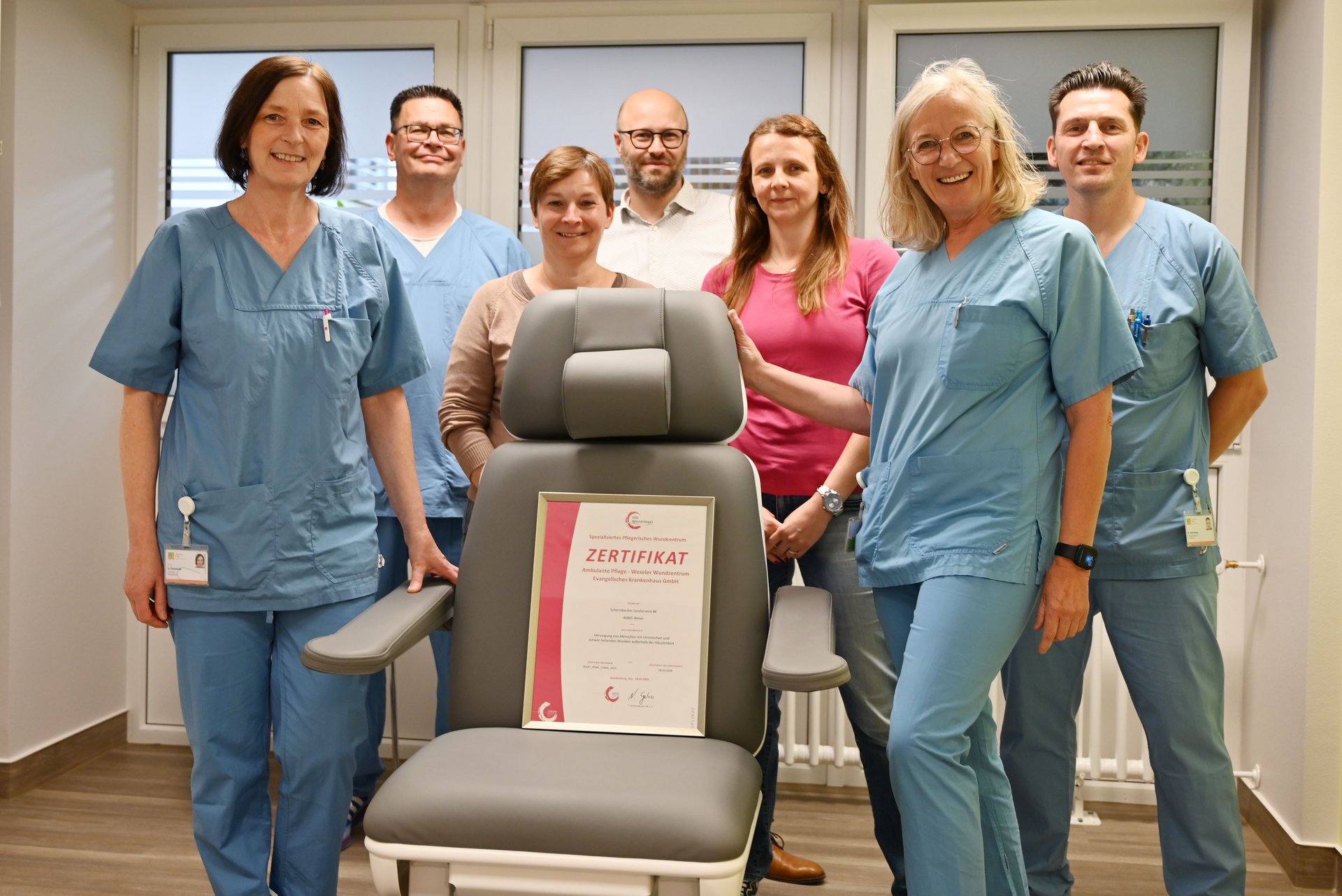 Für Patientinnen und Patienten sowie deren Angehörige bietet das ICW-Wundsiegel eine wichtige Orientierungshilfe. Es steht für Transparenz, Verlässlichkeit und ein geprüftes Qualitätsniveau, das Vertrauen schafft. Als zertifiziertes Zentrum stellt das Ambulante Wundzentrum des Gesundheitscampus Wesel sicher, dass Menschen mit chronischen Wunden bestmöglich medizinisch versorgt sowie individuell betreut und begleitet werden. „Wir legen großen Wert auf eine qualitativ hochwertige, evidenzbasierte und patientenzentrierte Wundversorgung. Dass unser ambulantes Wundzentrum nun mit dem ICW-Wundsiegel ausgezeichnet wurde, ist eine wertvolle Bestätigung unserer Arbeit und unserer hohen Standards. Dank und Anerkennung für diese tolle Arbeit gilt unseren Mitarbeitenden“, so Andreas Polack, Geschäftsbereichsleiter am Gesundheitscampus Wesel.